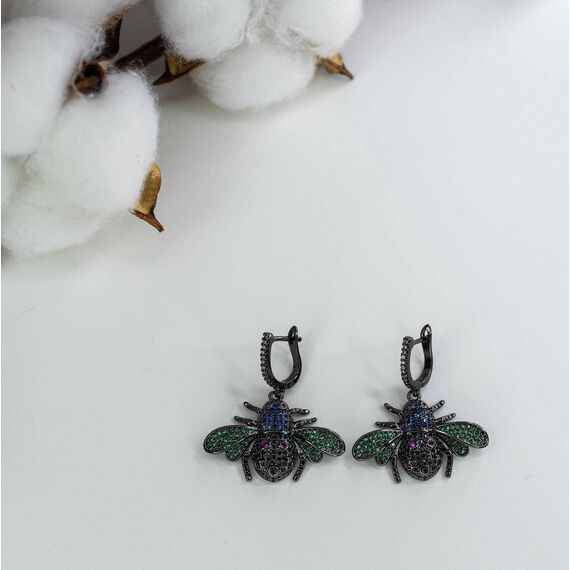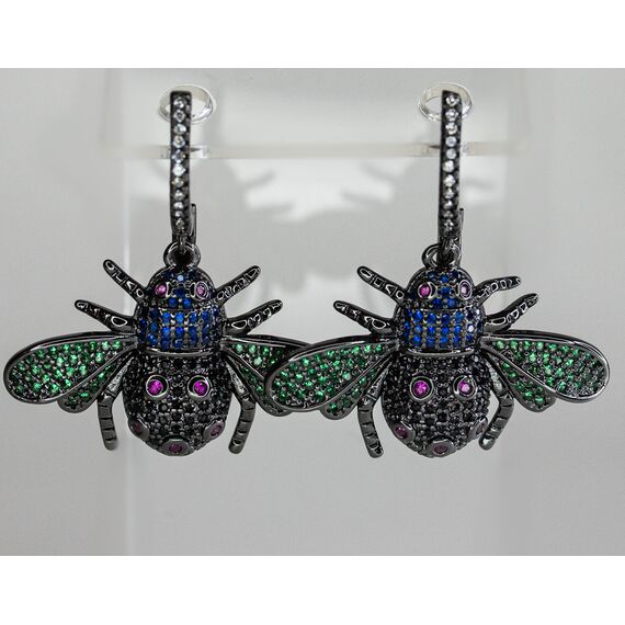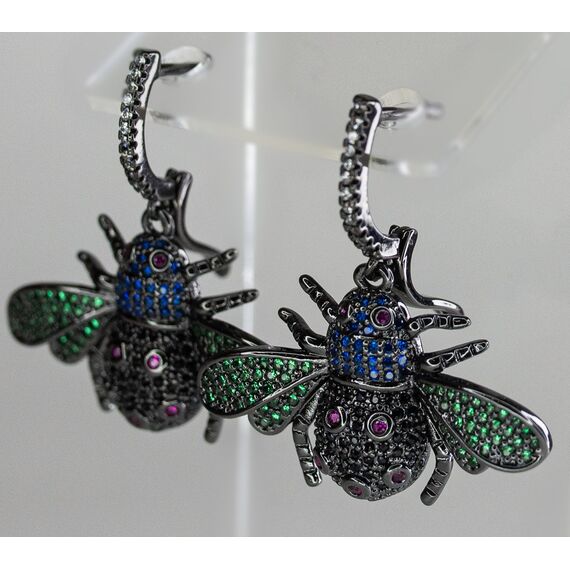 Серьги из гипоаллергенного ювелирного сплава черного цвета. Вставка- ювелирное стекло, цвет-зеленый,синий, розовый, черный. Высота серег -3,5см, ширина-3,5см. Английский замок (швенза-1см).