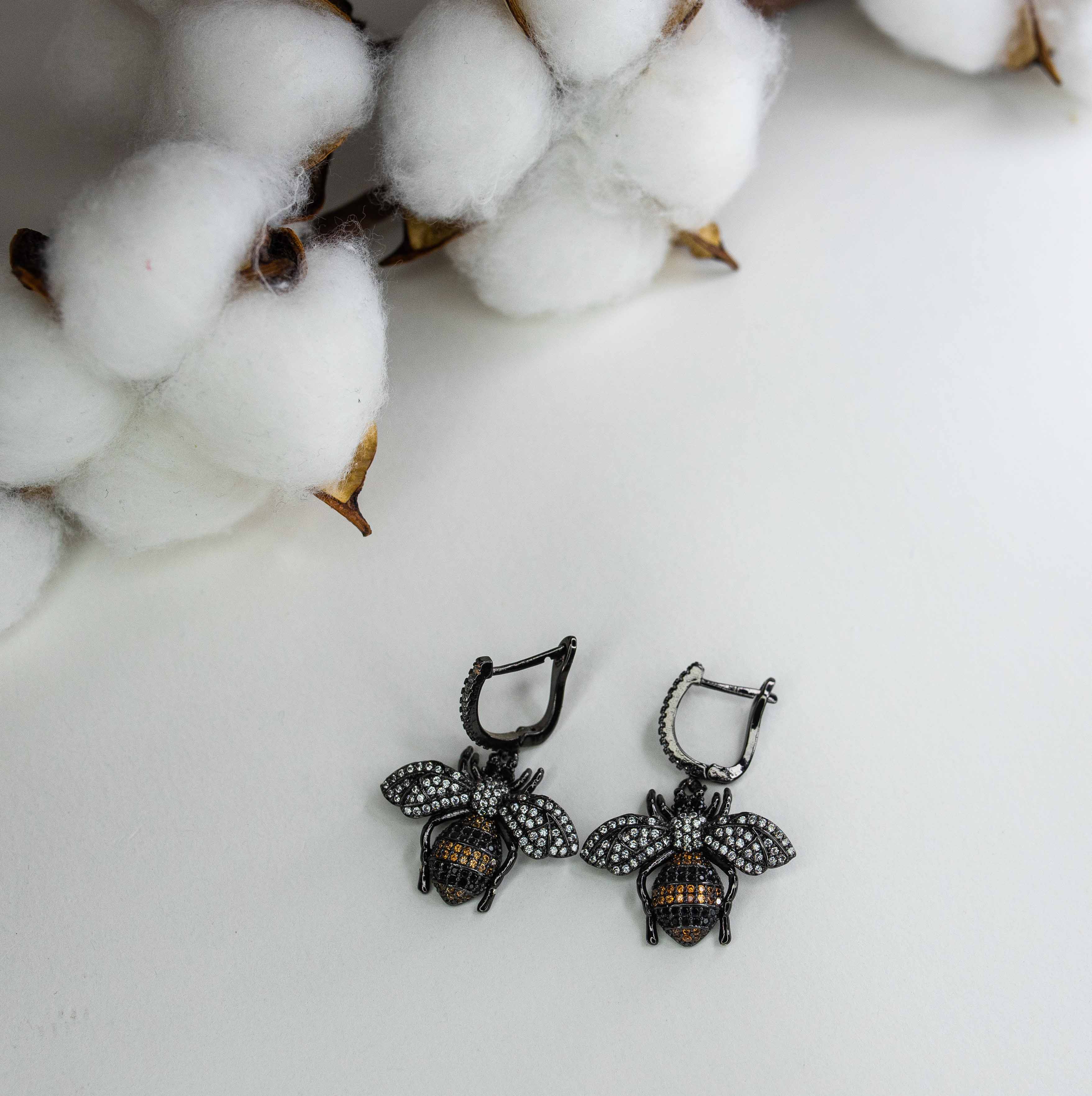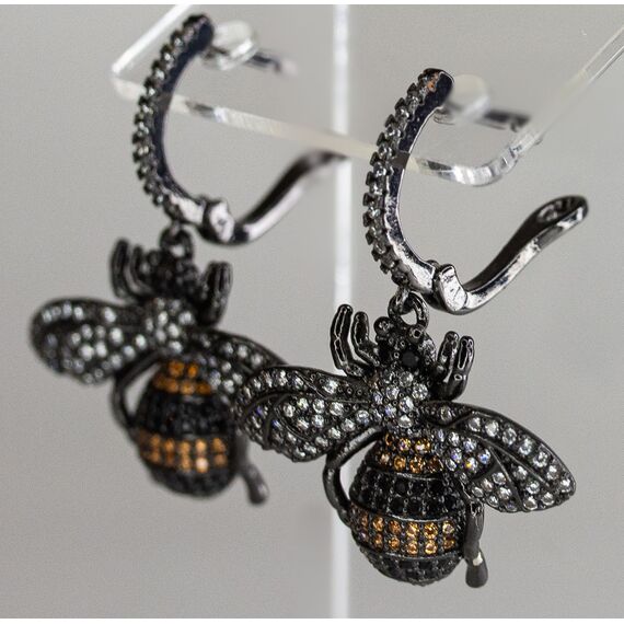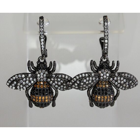 Серьги из гипоаллергенного ювелирного сплава черного цвета. Вставка-ювелирное стекло, цвет-белый , оранжевый , черный. Высота серег -3,5см., ширина-3см. Английский замок (швенза-1см).