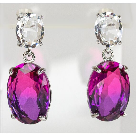 Серьги из гипоаллергенного ювелирного сплава серого цвета. Вставка - ювелирное стекло,цвет- белый, розовый, сиреневый. Высота серег -3 см, ширина- 1,5 см. Застежка-пусет.