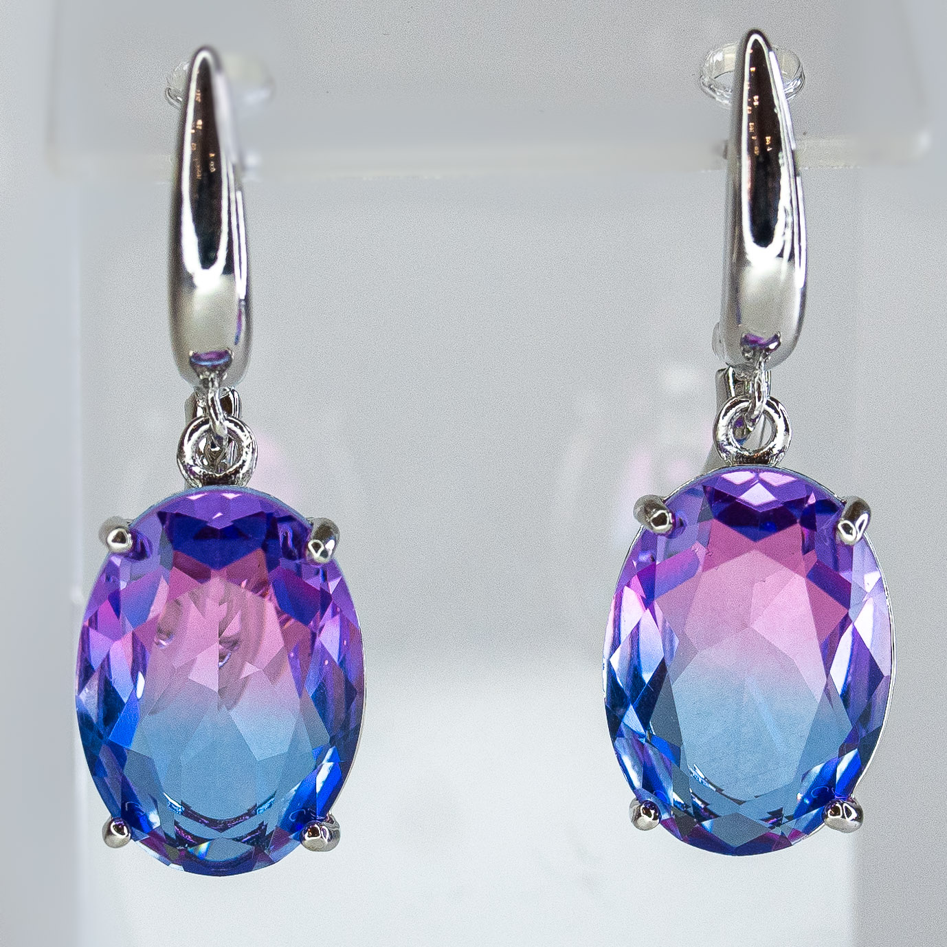Серьги из гипоаллергенного ювелирного сплава серого цвета. Вставка - ювелирное стекло, цвет- розовый, голубой . Высота серег -4 см, ширина- 1,5 см. Английский замок(швенза-1см).