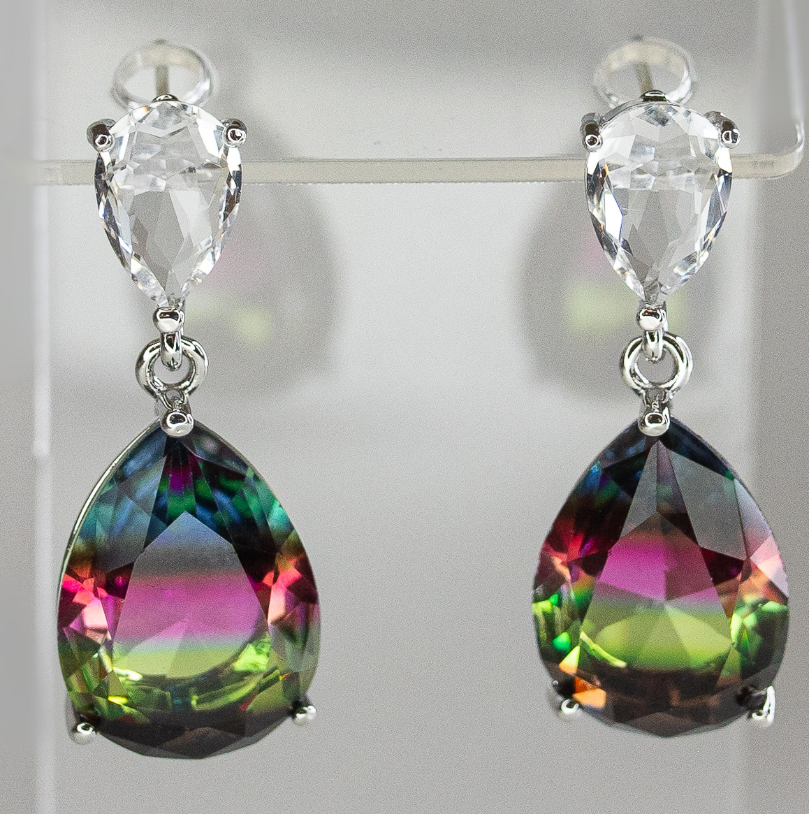 Серьги из гипоаллергенного ювелирного сплава серого цвета. Вставка - ювелирное стекло,цвет- белый, микс . Высота серег -3 см, ширина- 1,5 см. Застежка-пусет.