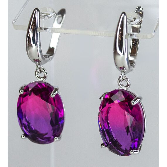 Серьги из гипоаллергенного ювелирного сплава серого цвета. Вставка - ювелирное стекло, цвет- розовый, сиреневый. Высота серег -4 см, ширина- 1,5 см. Английский замок (швенза-1см).