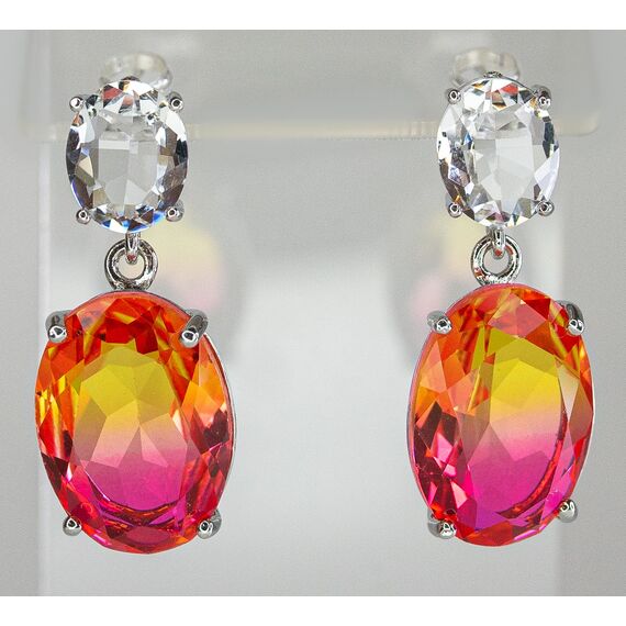 Серьги из гипоаллергенного ювелирного сплава серого цвета. Вставка - ювелирное стекло, цвет- белый, красный, желтый . Высота серег -3 см, ширина- 1,5 см. Застежка-пусет.