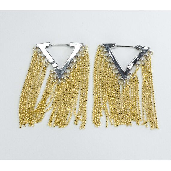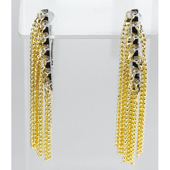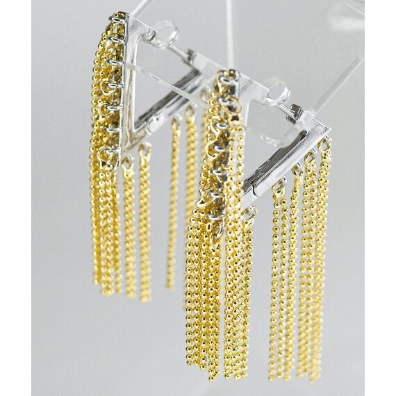 Серьги из гипоаллергенного ювелирного сплава серого и желтого цвета. Без вставок. Высота серег -4см, высота -2,5см. Застежка- скоба.