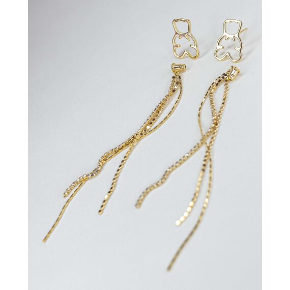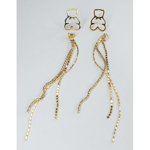 Серьги из гипоаллергенного ювелирного сплава желтого цвета. Вставка- ювелирное стекло белого цвета. Высота серег -10см, ширина-1.5см. Замок-пусет.