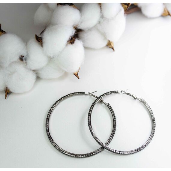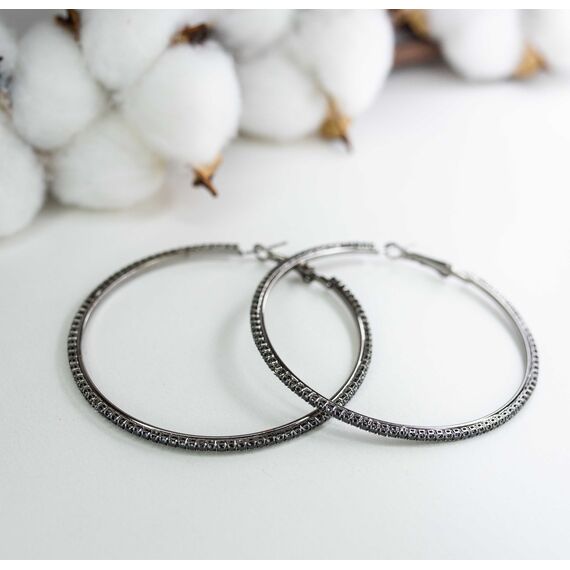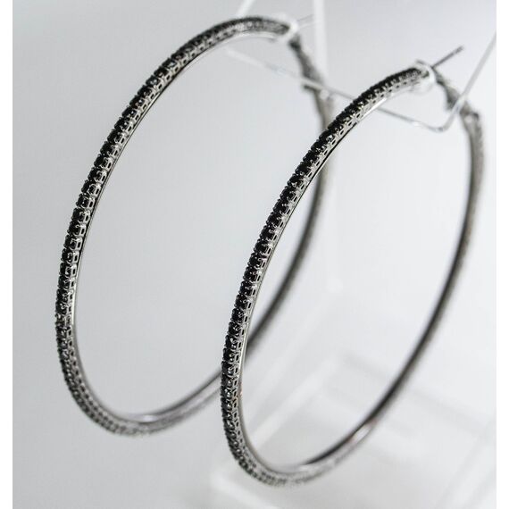 Серьги ( конго) из гипоаллергенного ювелирного сплава черного цвета. Вставка- ювелирное стекло , цвет- черный. Диаметр серег-6см. Застежка- скоба.