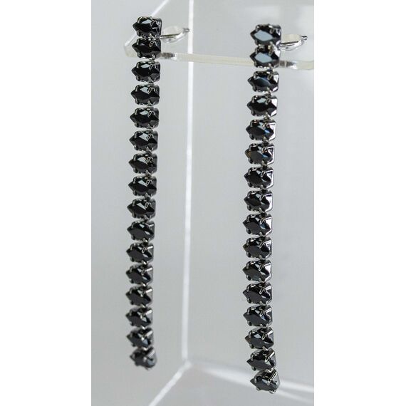 Серьги из гипоаллергенного ювелирного сплава серого цвета. Вставка- ювелирное стекло , цвет- черный. Высота серег-6,5см, ширина-0,5см. Застежка-пусет.
