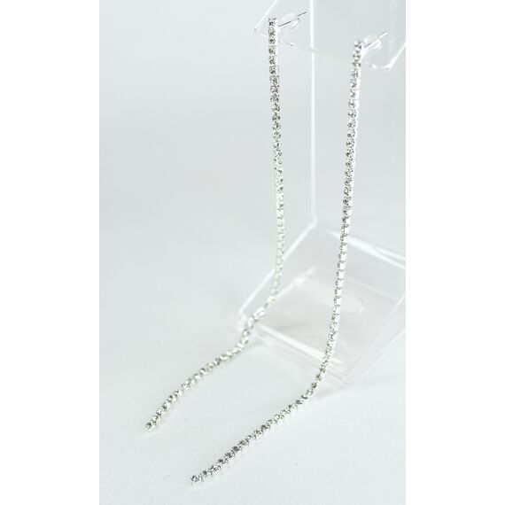 Серьги из гипоаллергенного ювелирного сплава серого цвета. Вставка- цирконы белого цвета. Высота серег-13,5см. Застежка- пусет.
