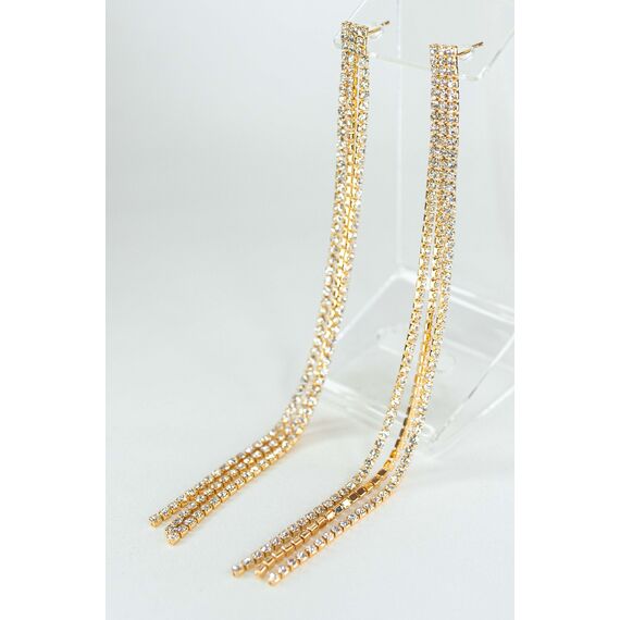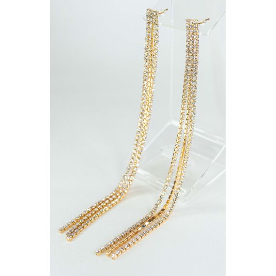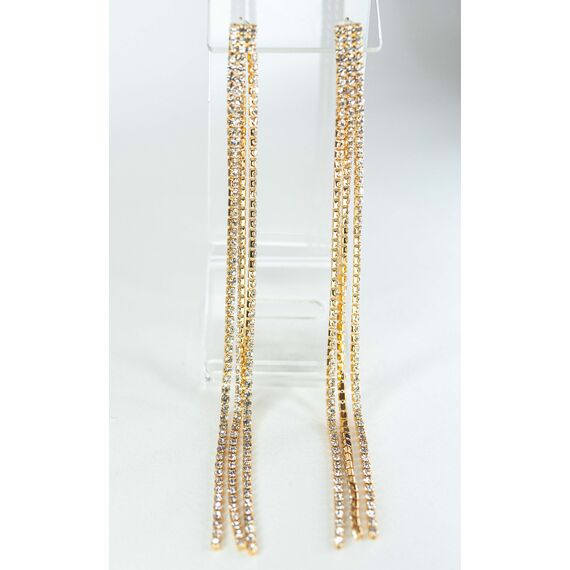Серьги из гипоаллергенного ювелирного сплава желтого цвета. Вставка- цирконы белого цвета. Высота серег-13,0см, ( три нити). Застежка- пусет.