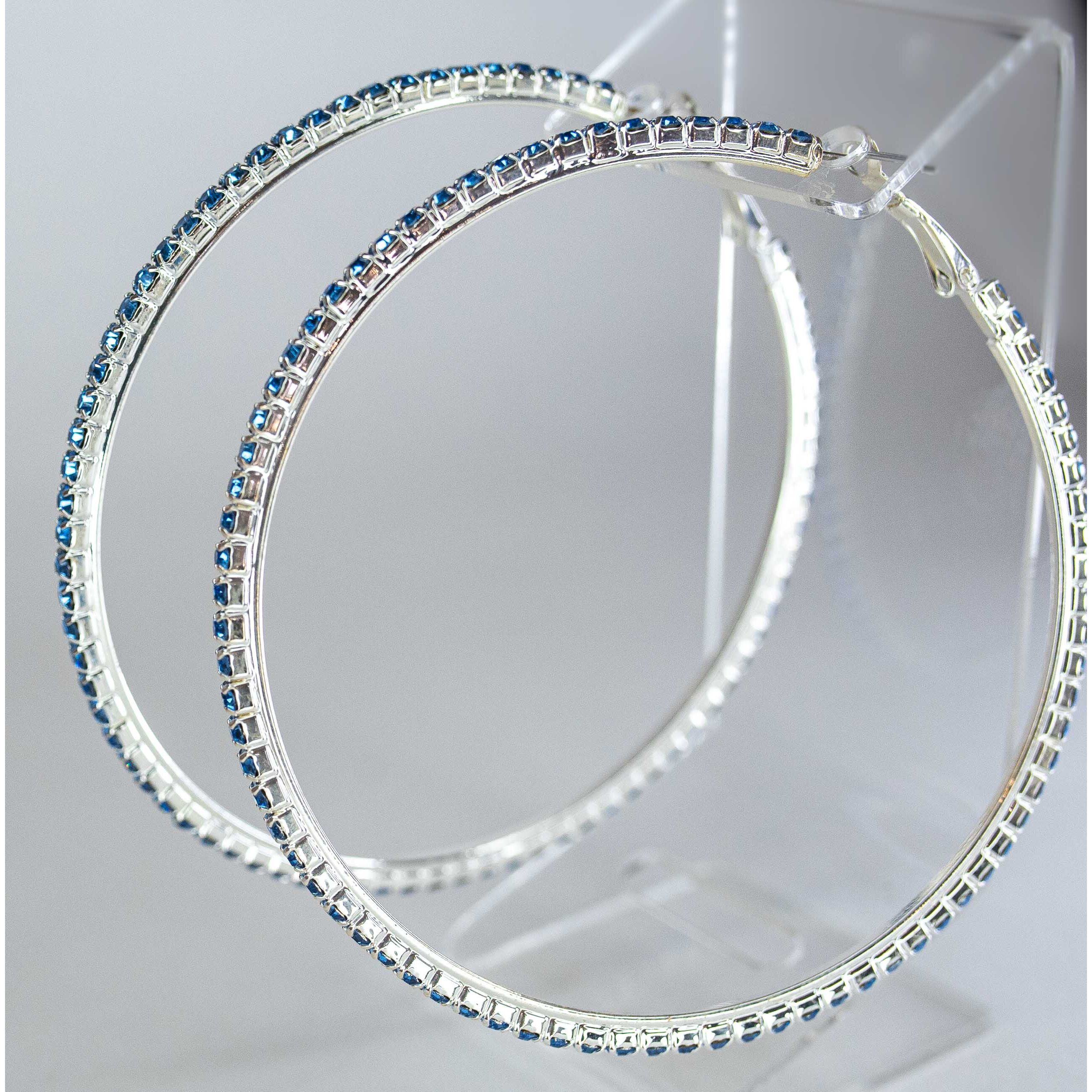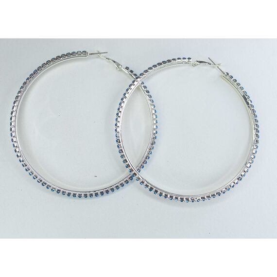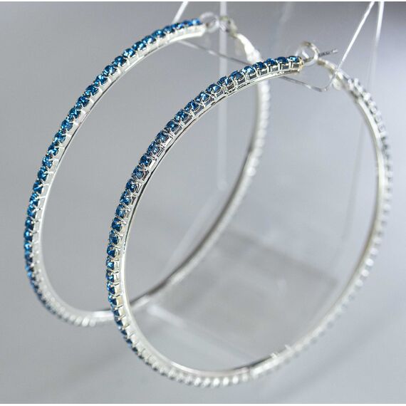 Серьги ( конго) из гипоаллергенного ювелирного сплава серого цвета. Вставка- ювелирное стекло голубого цвета. Диаметр серег-7,5см. застежка- скоба.