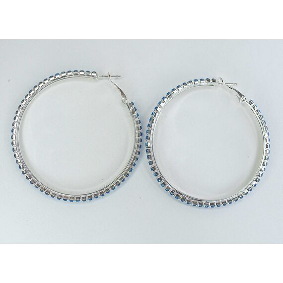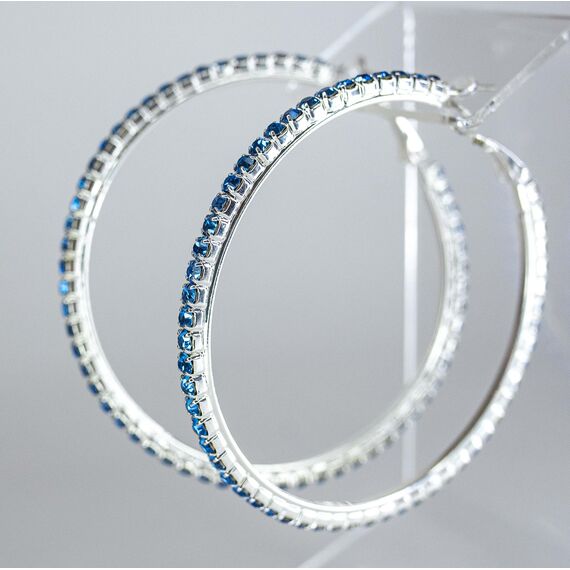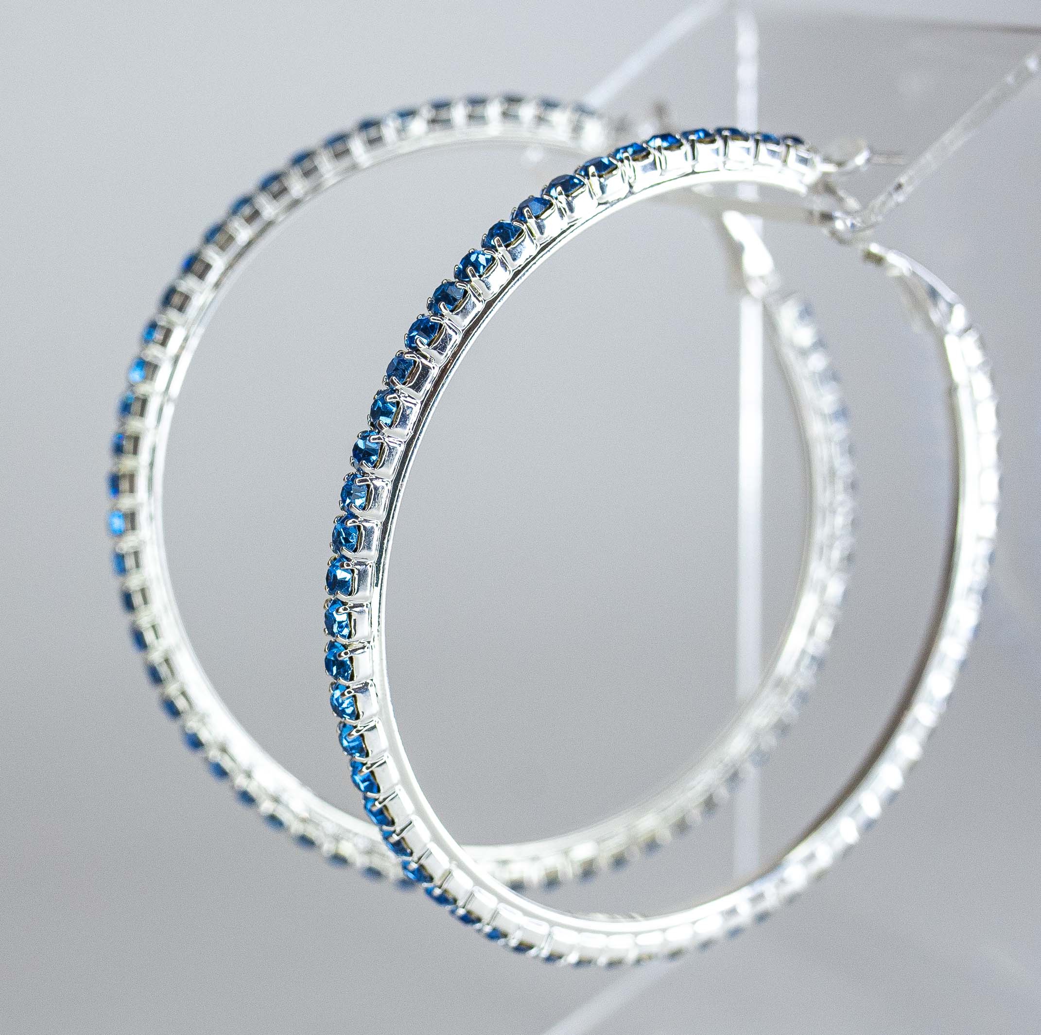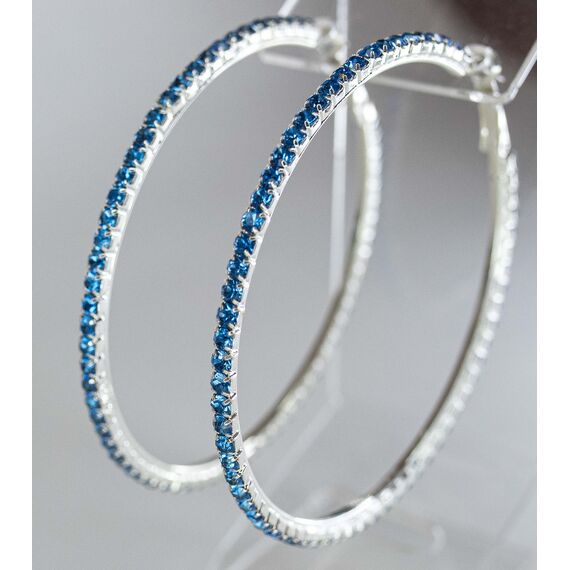 Серьги ( конго) из гипоаллергенного ювелирного сплава серого цвета. Вставка- ювелирное стекло голубого цвета. Диаметр серег-6,5см. застежка- клипса (швенза-1см).