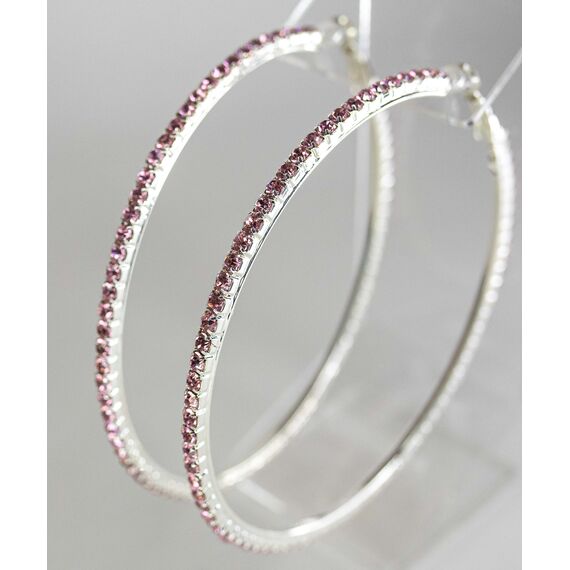 Серьги ( конго) из гипоаллергенного ювелирного сплава серого цвета. Вставка- ювелирное стекло розового цвета. Диаметр серег-7,5см. Застежка- клипса (швенза-1см).