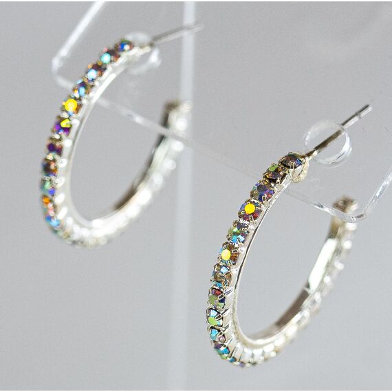 Серьги ( конго) из гипоаллергенного ювелирного сплава серого цвета. Вставка- ювелирное стекло , цвет- мистик. Диаметр серег-3см. Застежка- пусет.