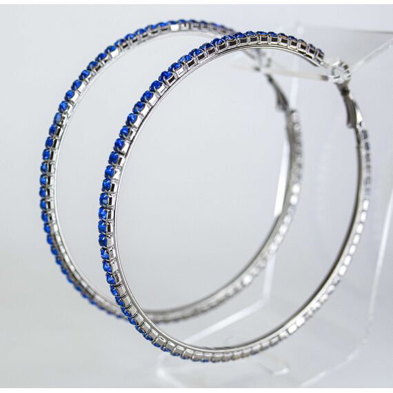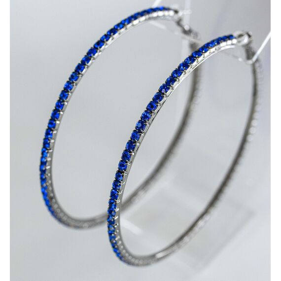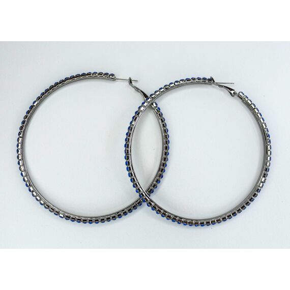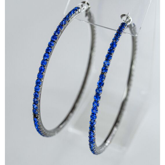 Серьги ( конго) из гипоаллергенного ювелирного сплава черного цвета. Вставка- ювелирное стекло , цвет- синий. Диаметр серег-7,5см. Застежка- клипса( швенза-1см).