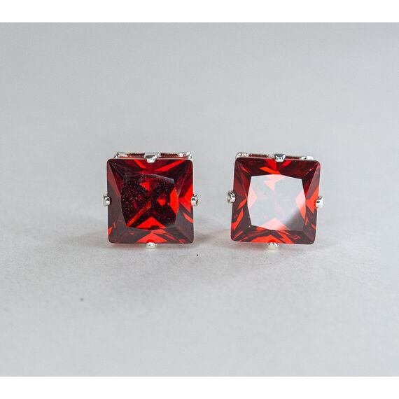 Серьги из гипоаллергенного ювелирного сплава серого цвета. Вставка-циркон , цвет- красный. Размер серег-1,0/1,0см. Застежка- пусет.