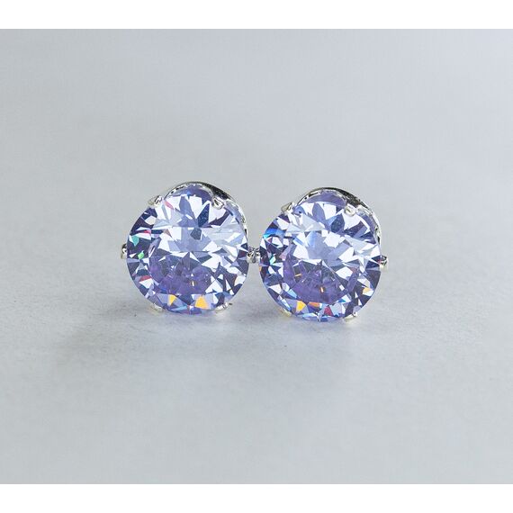 Серьги из гипоаллергенного ювелирного сплава серого цвета. Вставка-циркон , цвет- фиолетовый. Размер серег-1,0/1,0см. Застежка- пусет.