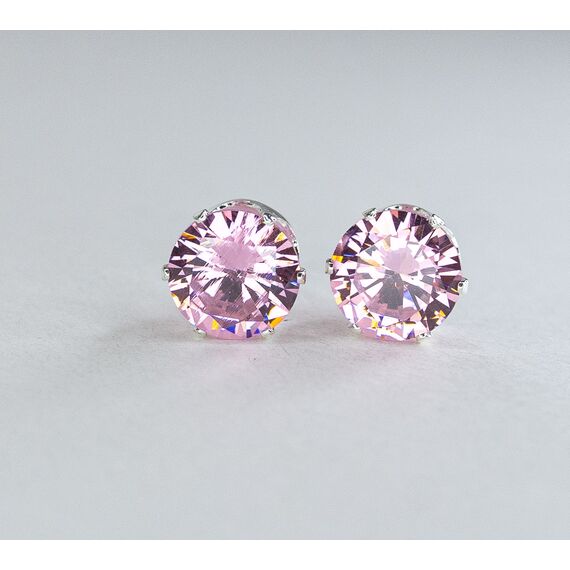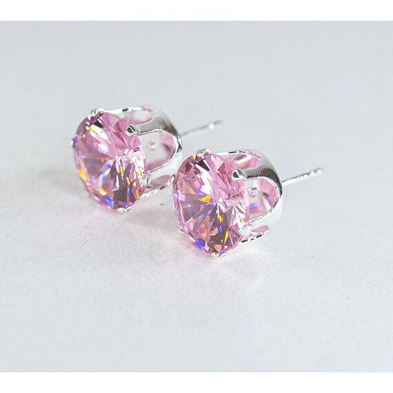 Серьги из гипоаллергенного ювелирного сплава серого цвета. Вставка-циркон , цвет- розовый. Размер серег-1,0/1,0см. Застежка- пусет.