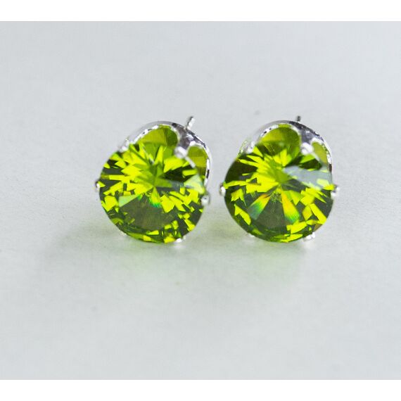 Серьги из гипоаллергенного ювелирного сплава серого цвета. Вставка-циркон , цвет- зеленый. Размер серег-1,0/1,0см. Застежка- пусет.
