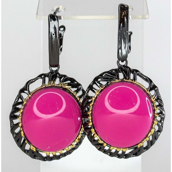 Серьги из гипоаллергенного ювелирного сплава черного и желтого цвета. Вставка- эпоксидная смола розового цвета. Высота серег- 5,5 см, ширина -3,0см. Английский замок ( швенза-1,0см).