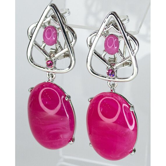 Серьги из гипоаллергенного ювелирного сплава серого цвета. Вставка- эпоксидная смола розового цвета. Высота серег-6,0см. ширина-2,0см. Итальянский замок ( швенза-1,2см и застежка- клипса).