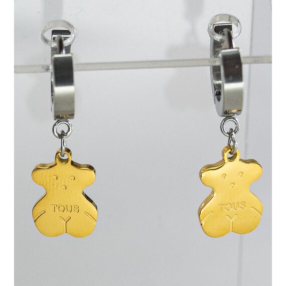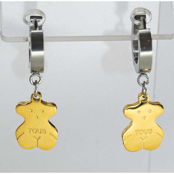 Серьги из гипоаллергенного ювелирного сплава серого и желтого цвета. Без вставок. Высота серег- 2,0см, ширина-1,0см. Застежка- скоба.
