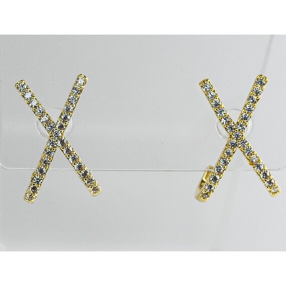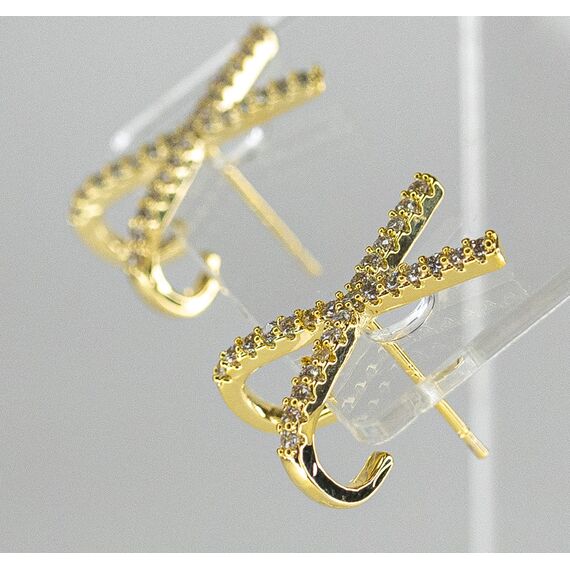 Серьги из гипоаллергенного ювелирного сплава желтого цвета. Вставка- цирконы белого цвета. Высота серег- 1,5см, ширина-1,0см. Застежка- пусет.