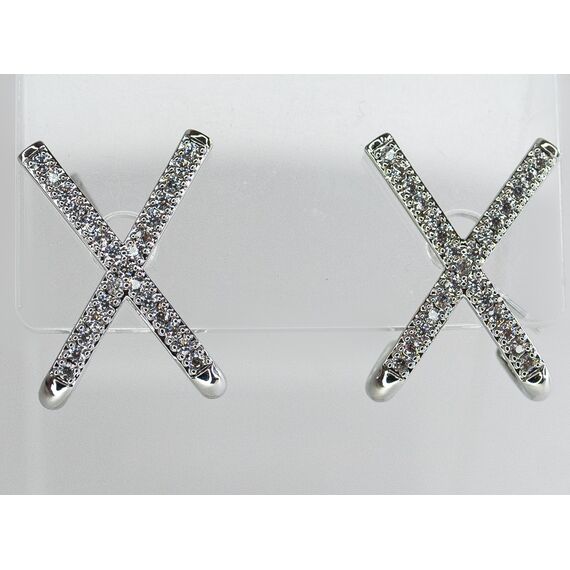 Серьги из гипоаллергенного ювелирного сплава серого цвета. Вставка- цирконы белого цвета. Высота серег- 1,5см, ширина-1,0см. Застежка- пусет.