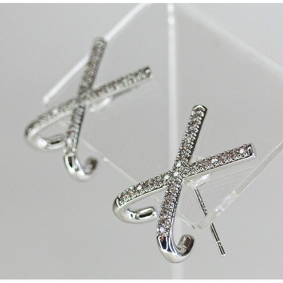 Серьги из гипоаллергенного ювелирного сплава серого цвета. Вставка- цирконы белого цвета. Высота серег- 2,0см, ширина-1,0см. Застежка- пусет.