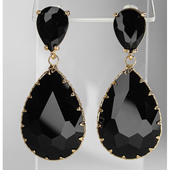 Серьги из гипоаллергенного ювелирного сплава желтого цвета. Вставка- ювелирное стекло черного цвета. Высота серег-4,5см, ширина-2,0см. Застежка- пусет.