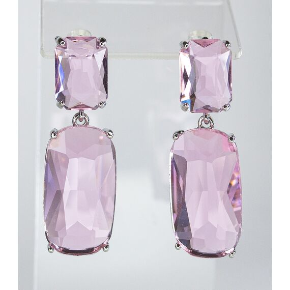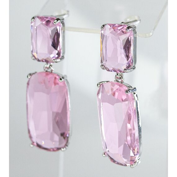 Серьги из гипоаллергенного ювелирного сплава серого цвета. Вставка- ювелирное стекло розового цвета. Высота серег-4,0см, ширина-1,5см. Застежка- пусет.