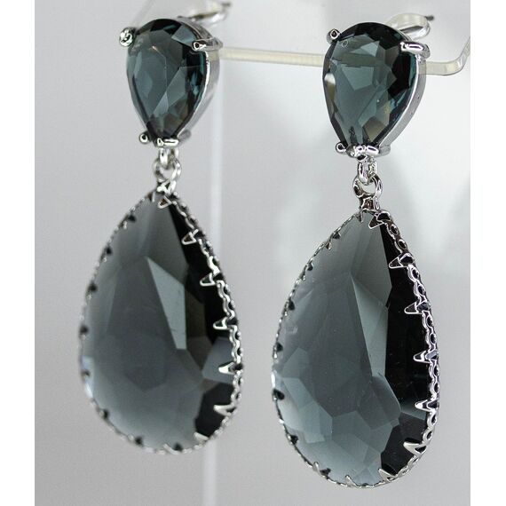 Серьги из гипоаллергенного ювелирного сплава серого цвета. Вставка- ювелирное стекло серого цвета. Высота серег-4,5см, ширина-2,0см. Застежка- пусет.