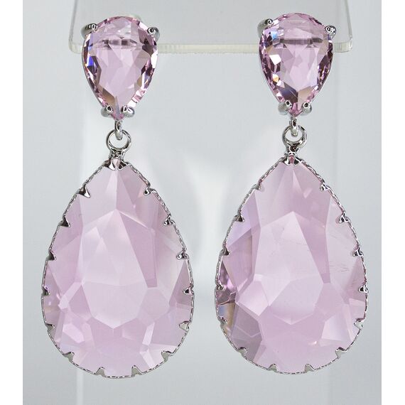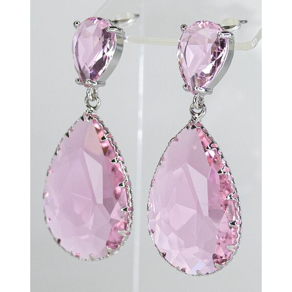 Серьги из гипоаллергенного ювелирного сплава серого цвета. Вставка- ювелирное стекло розового цвета. Высота серег-4,5см, ширина-2,0см. Застежка- пусет.