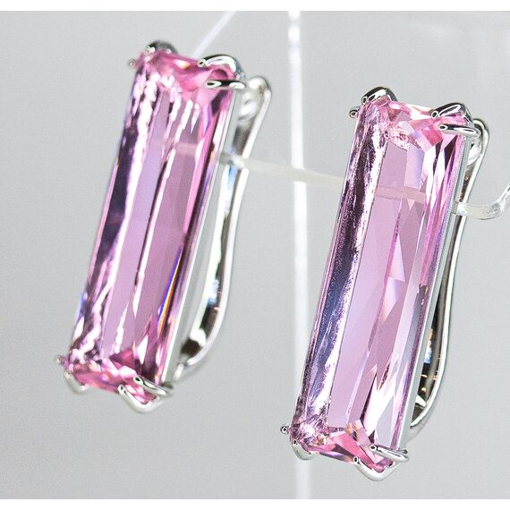 Серьги из гипоаллергенного ювелирного сплава серого цвета. Вставка- ювелирное стекло розового цвета. Высота серег-3,0см, ширина-1,0см. Застежка- английская ( швенза-1,0см).