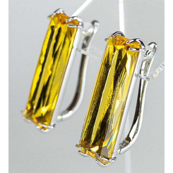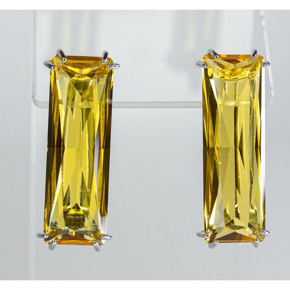 Серьги из гипоаллергенного ювелирного сплава серого цвета. Вставка- ювелирное стекло желтого цвета. Высота серег-3,0см, ширина-1,0см. Застежка- английская ( швенза-1,0см).