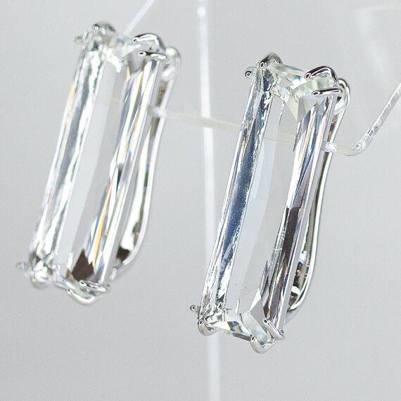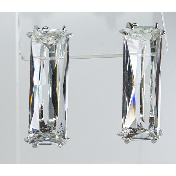 Серьги из гипоаллергенного ювелирного сплава серого цвета. Вставка- ювелирное стекло белого цвета. Высота серег-3,0см, ширина-1,0см. Застежка- английская ( швенза-1,0см).