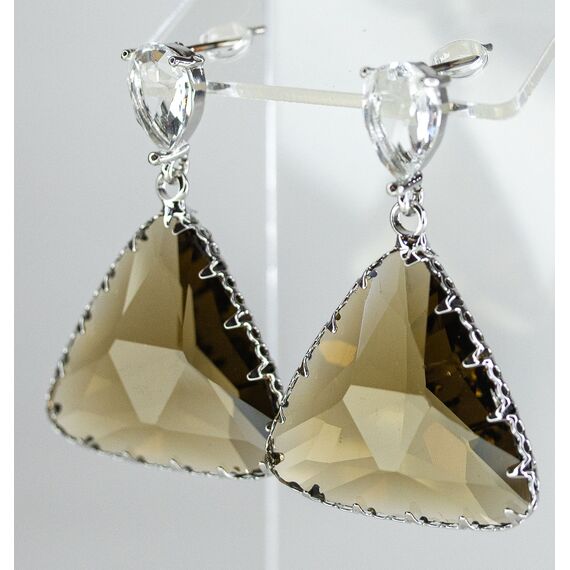 Серьги из гипоаллергенного ювелирного сплава серого цвета. Вставка- ювелирное стекло белого и серого цвета. Высота серег-4,0см, ширина-2,5см. Застежка- пусет.