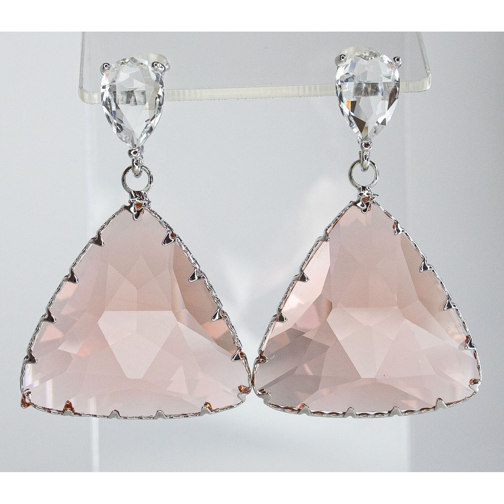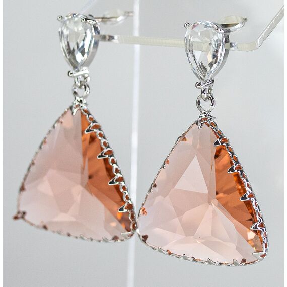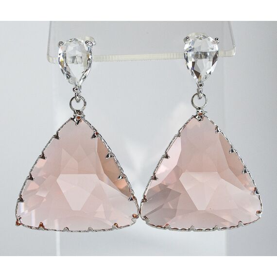 Серьги из гипоаллергенного ювелирного сплава серого цвета. Вставка- ювелирное стекло розового и белого цвета. Высота серег-4,0см, ширина-2,5см. Застежка- пусет.