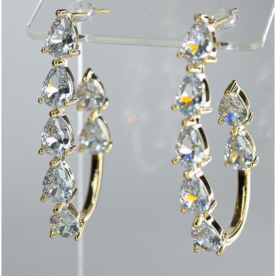 Серьги из гипоаллергенного ювелирного сплава желтого цвета. Вставка- циркон белого цвета. Высота серег-3,5см, ширина-0,5см. Застежка- пусет.