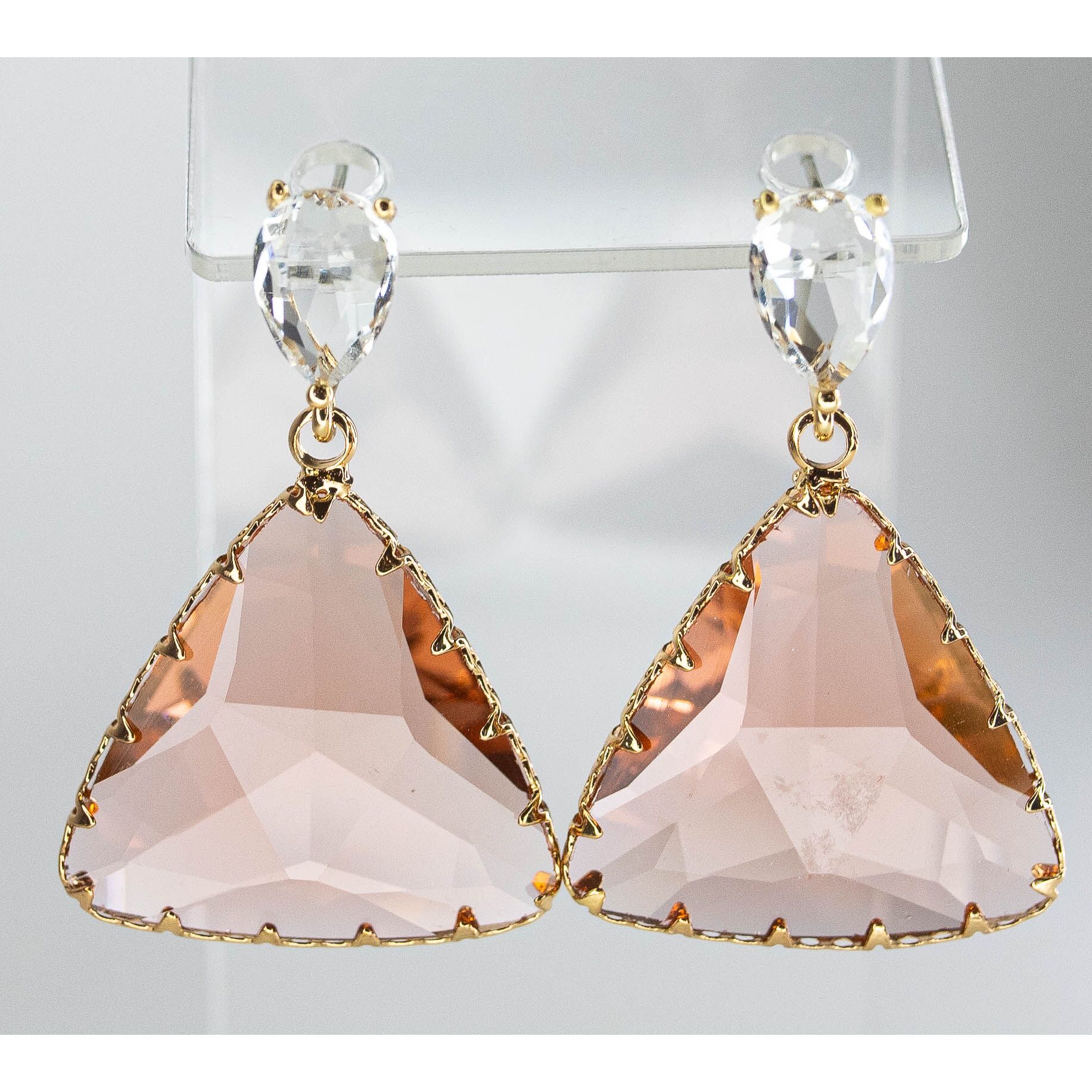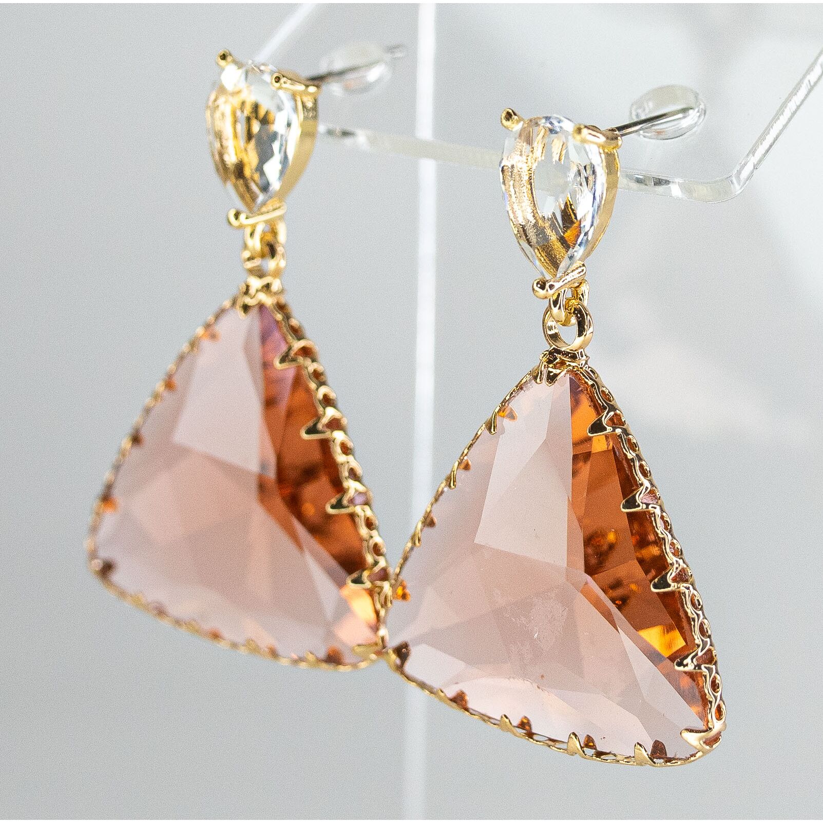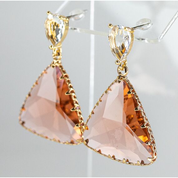 Серьги из гипоаллергенного ювелирного сплава желтого цвета. Вставка- циркон белого и розового цвета. Высота серег-4,0см, ширина-2,5см. Застежка- пусет.