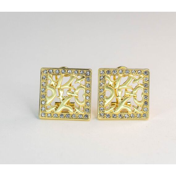 Серьги из гипоаллергенного ювелирного сплава желтого цвета. Вставка- цирконы, цвет- белый. Высота серег-2,5см, ширина-2,5см. Итальянский замок ( штифт-1,2см и застежка- клипса).