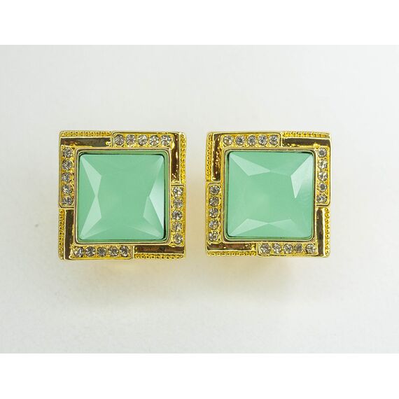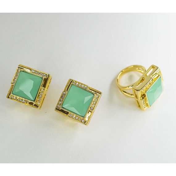 Серьги женские из гипоаллергенного ювелирного сплава желтого цвета. Вставка- .кварц салатового цвета и ювелирное стекло белого цвета. Высота серег- 2,0см. ширина- 2,0см. Застежка- итальянская ( штифт-1,2см и клипса).