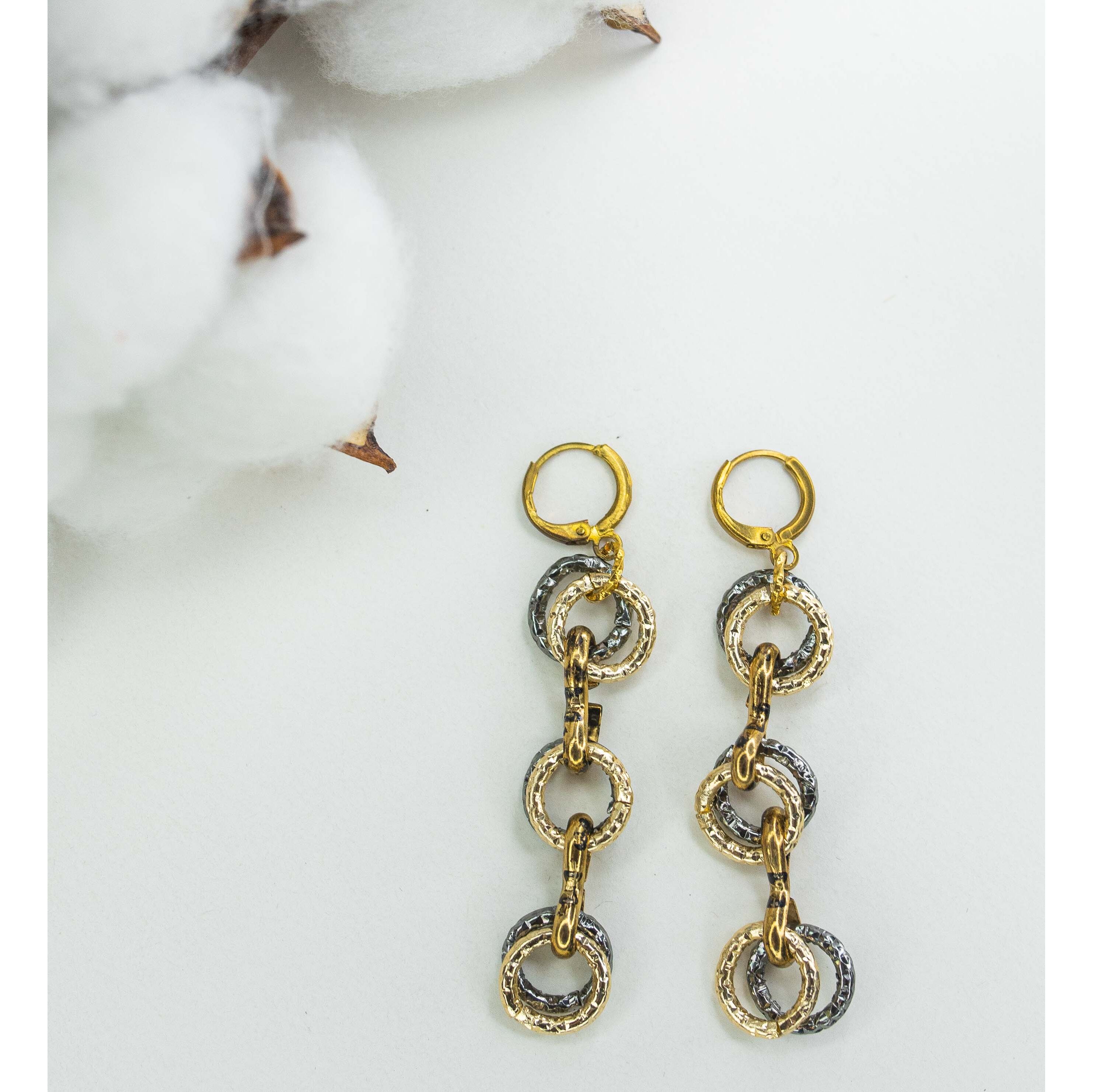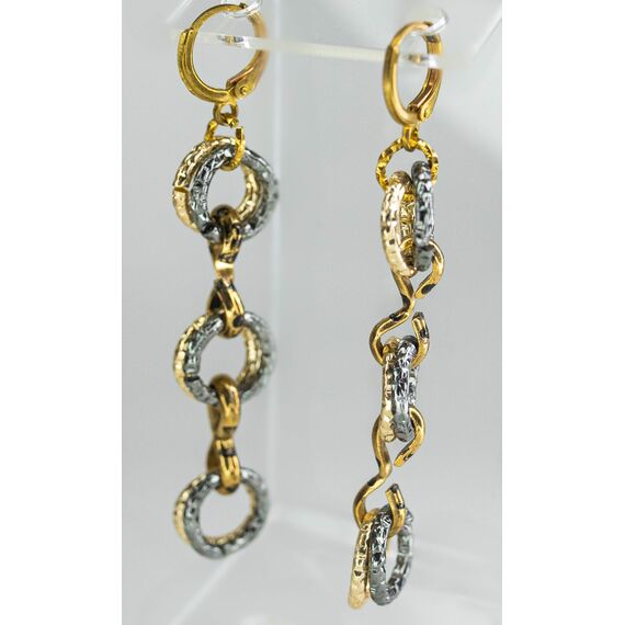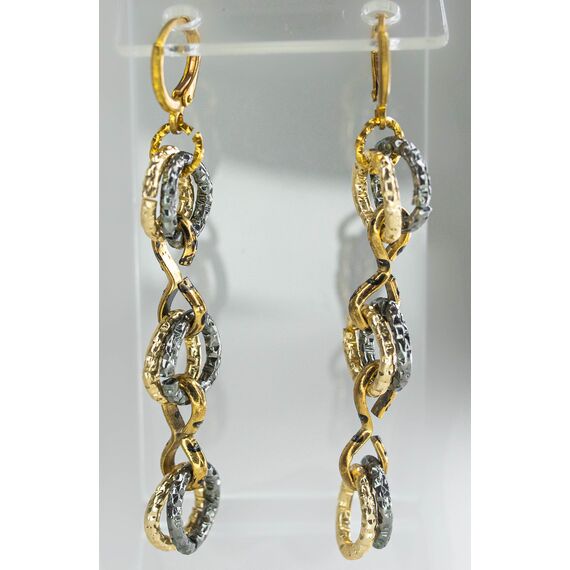 Серьги из гипоаллергенного ювелирного сплава желтого и черного цвета. Без вставок. Высота серег- 7,0см. Застежка- скоба.
