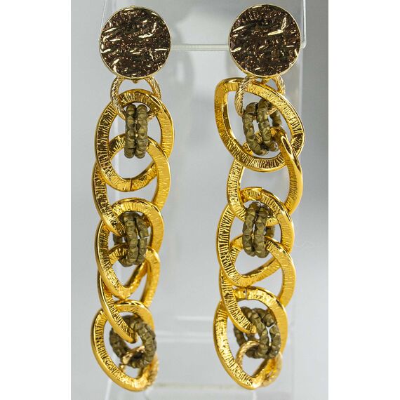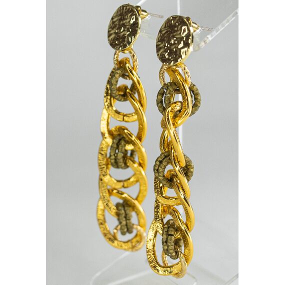 Серьги из гипоаллергенного ювелирного сплава желтого и серого цвета. Без вставок. Высота серег-7,5см. Застежка- пусет.