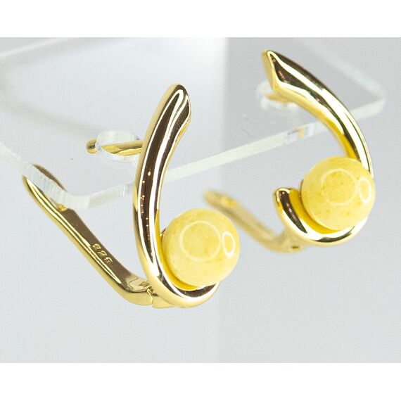 Серьги из гипоаллергенной бронзы с позолотой. Вставка- нат.янтарь белого цвета ( размер камня-1,0/1,0см). Высота серег-2,0см, ширина-1,0см. Английский замок ( швенза-1,0см).