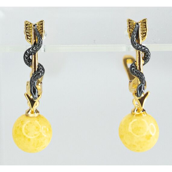 Серьги из гипоаллергенной бронзы с чернением и позолотой. Вставка- нат.янтарь белого цвета ( размер камня-1,0/1,0см). Высота серег-2,0см, ширина-1,0см. Английский замок ( швенза-1,0см).