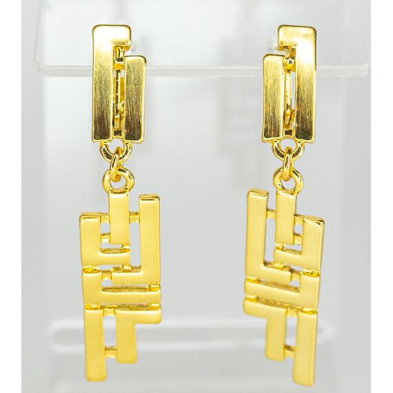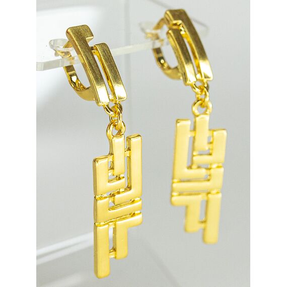 Серьги из гипоаллергенного ювелирного сплава желтого цвета. Без вставок. Высота серег-4,0см, ширина-1,5см. Застежка- итальянская (швенза-1,2см и клипса).