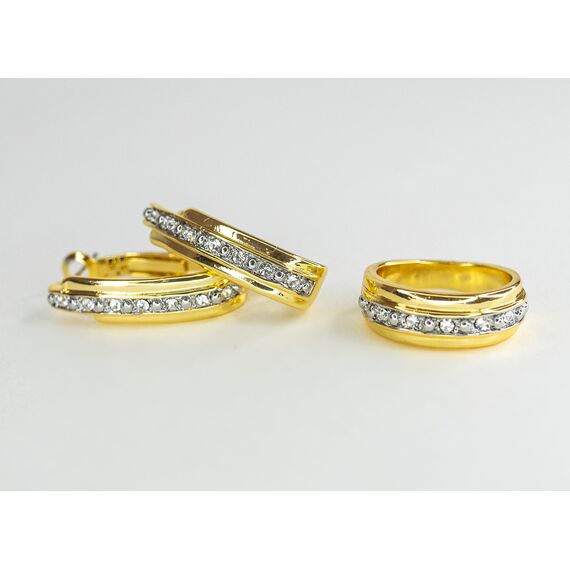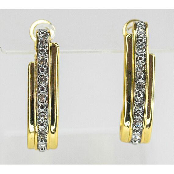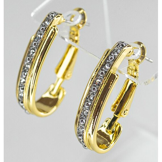 Серьги из гипоаллергенного ювелирного сплава желтого цвета. Вставка- ювелирное стекло белого цвета. Высота серег-3,0см, ширина-0,8см. Итальянский замок (швенза-1,2см и застежка- клипса).