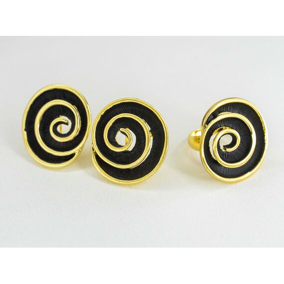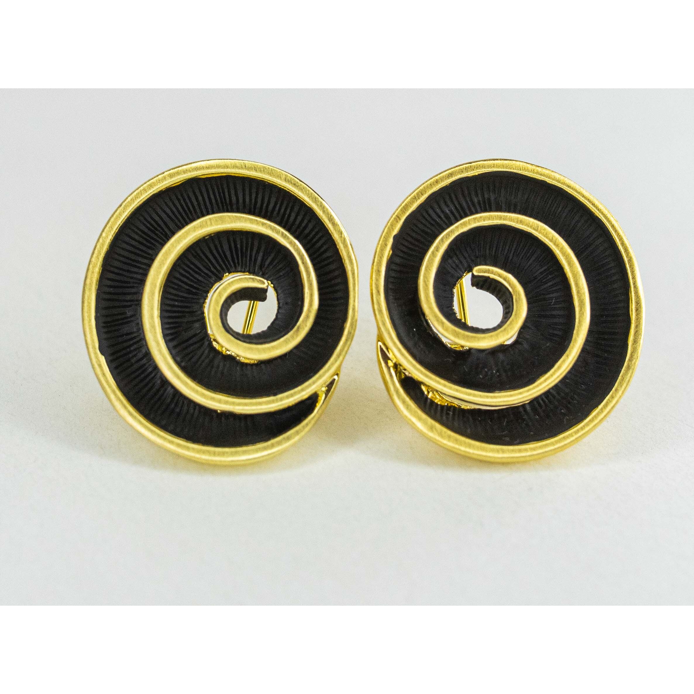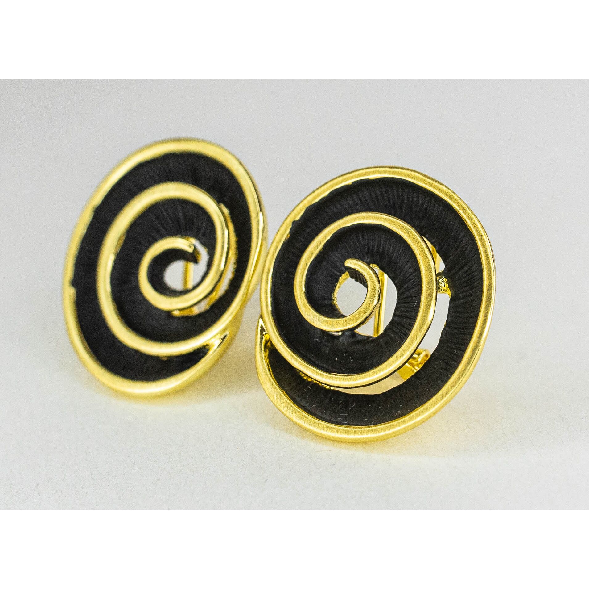 Серьги из гипоаллергенного ювелирного сплава черного и желтого цвета. Без вставок. Высота серег-3,0см, ширина-2,5см. Итальянский замок (швенза-1,2см и застежка- клипса).