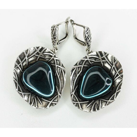 Серьги из гипоаллергенного ювелирного сплава серого цвета. Вставка- улексит( кошачий глаз), цвет- лондон блю. Высота серег-5,0см, ширина-3,5см. Английский замок (швенза-1,0см).