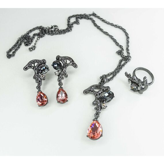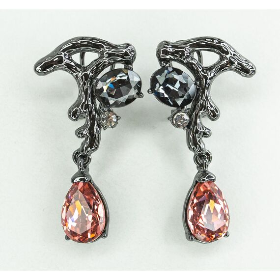 Серьги из гипоаллергенного ювелирного сплава черного цвета. Вставка- ювелирное стекло, цвет- розовый, белый, серый. Высота серег-5,0см, ширина-2,0см. Итальянский замок (швенза-1,2см и застежка- клипса).